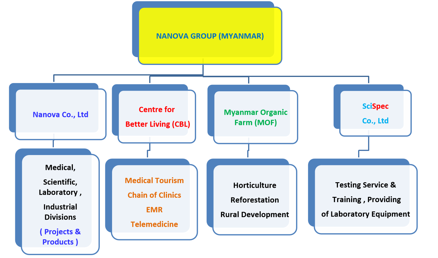 Nanova Scientific Division was established as a core division of Nanova Co., Ltd to support Myanmar's growing demand for quality control, research, education, and regulatory compliance across public and private sectors. Started in 1998, Nanova Group has expanded to include scientific, medical, and industrial divisions, with testing laboratories and organic farming operations.